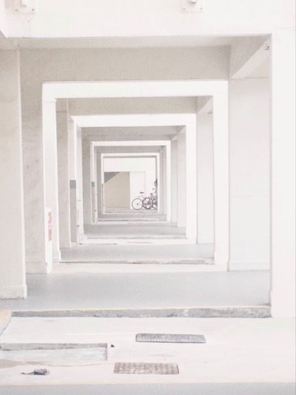 (作者摄于组屋空层,柱梁围起来像迷宫。)