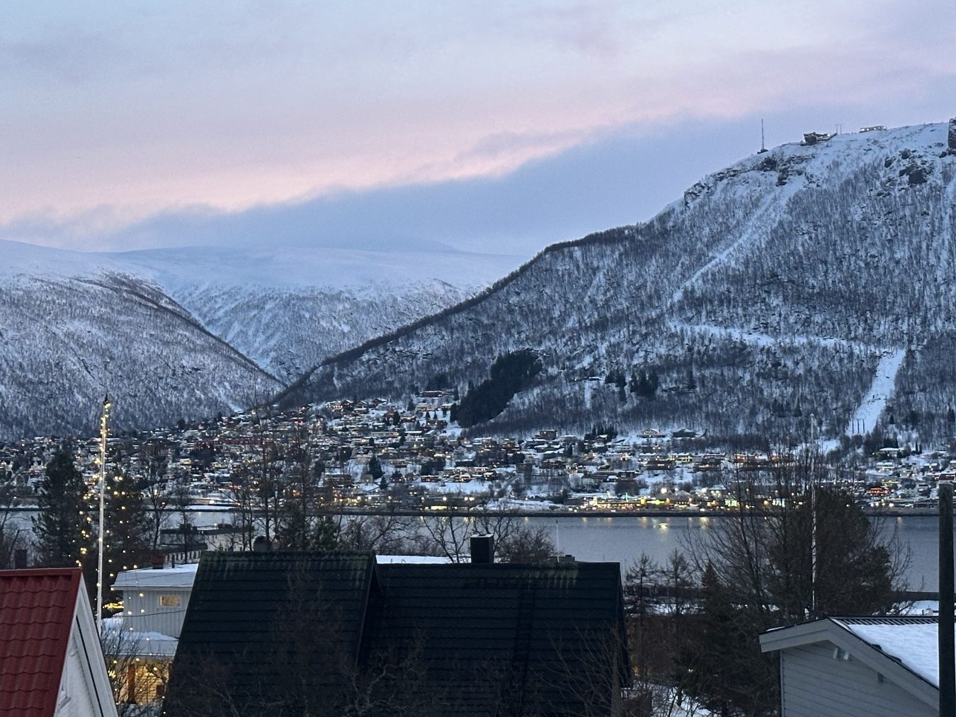从Tromsø民宿望出去的湖泊与大山。