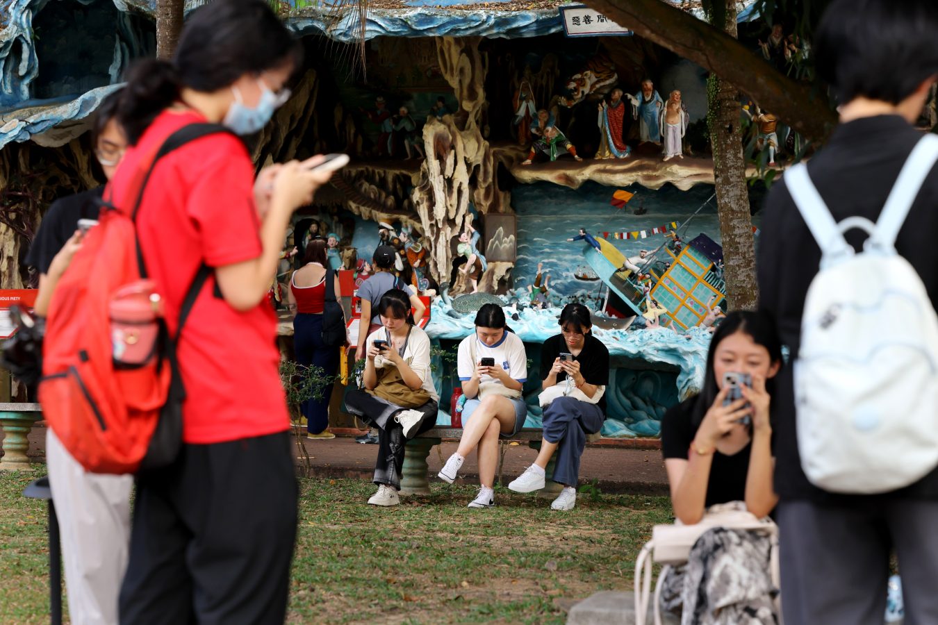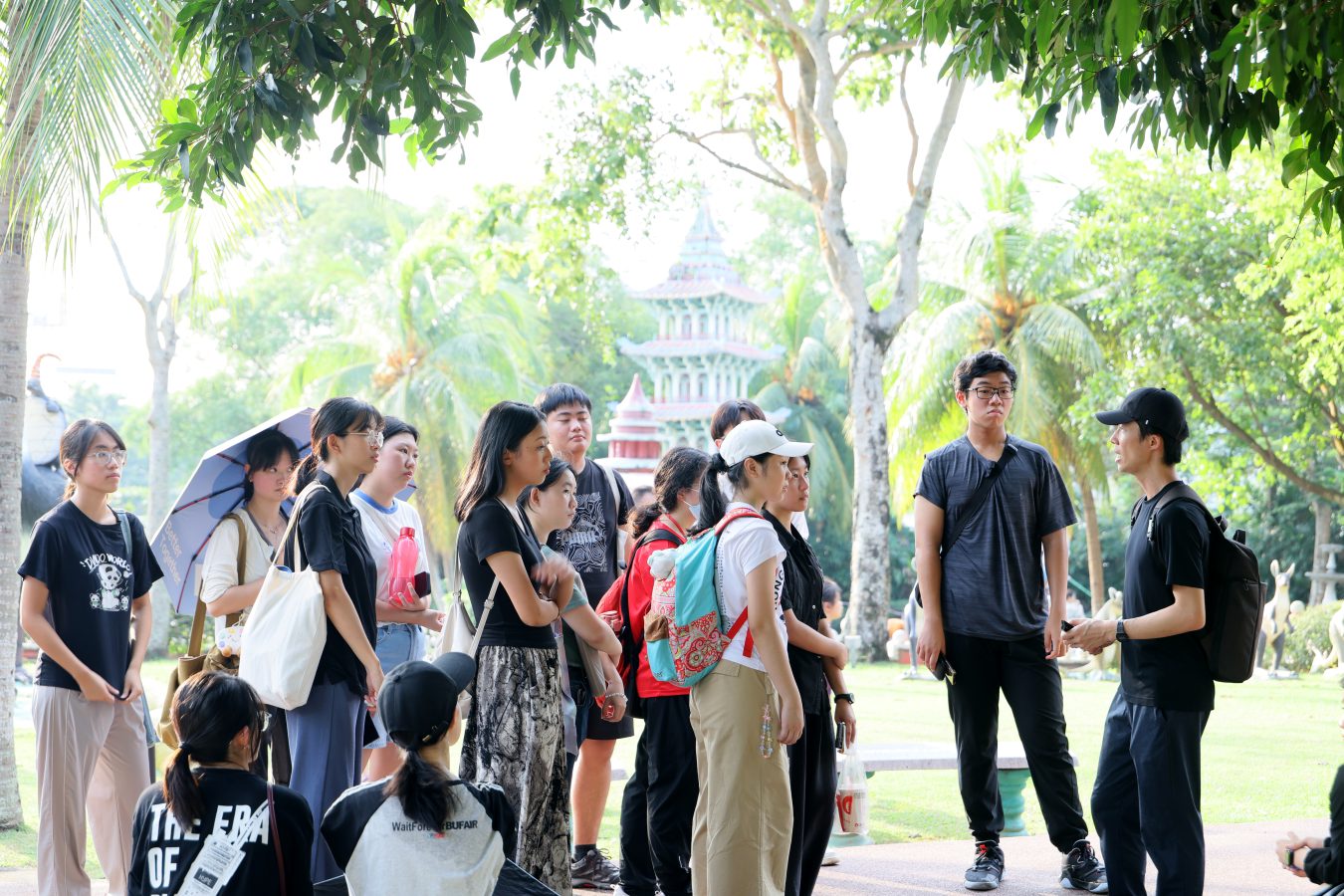 虎豹别墅得名于“虎标”创办人胡文虎和胡文豹兄弟,当年也称“万金油花园”,花园内雕塑林立。梁海彬曾撰写文章介绍它的前世今生,现场的学生作者则倾听线下导览版本,移步换景地感受真实历史。身为导师的他期待学生们用直觉与感官写作,“感受到了什么或者没有任何原因,于是我写出这样的文章。”